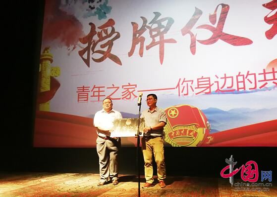 共青團新鄉(xiāng)市委副書記賈紫亮為新鄉(xiāng)中影好萊塢國際影城授牌